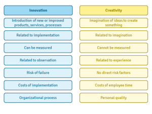 To innovate means to develop a new idea then translating it into a process or an innovative product. Certainly it is necessary first to hold it; Perhaps the fact is not considered sufficiently, is this: not all new ideas are valid or appropriate. For this reason it is necessary to distinguish between Creativity and Innovation.