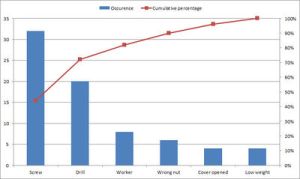 Pareto chart is a tool that enables managers to find the most important causes of the problems. It is based on probability distribution that describes many phenomena in production, sociology, finance and other areas. See examples below.