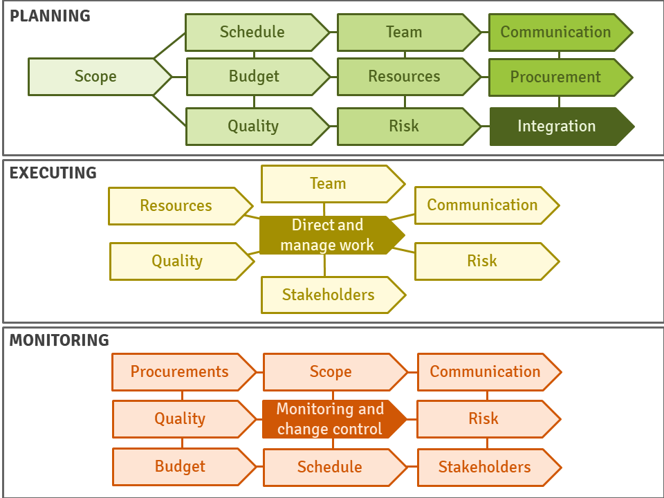 | Software development process — Management of complexity — Organizational project management — Life cycle approach — Successful project management — Project delivery method — Applications of project management — Traditional project management — Integrated project management |